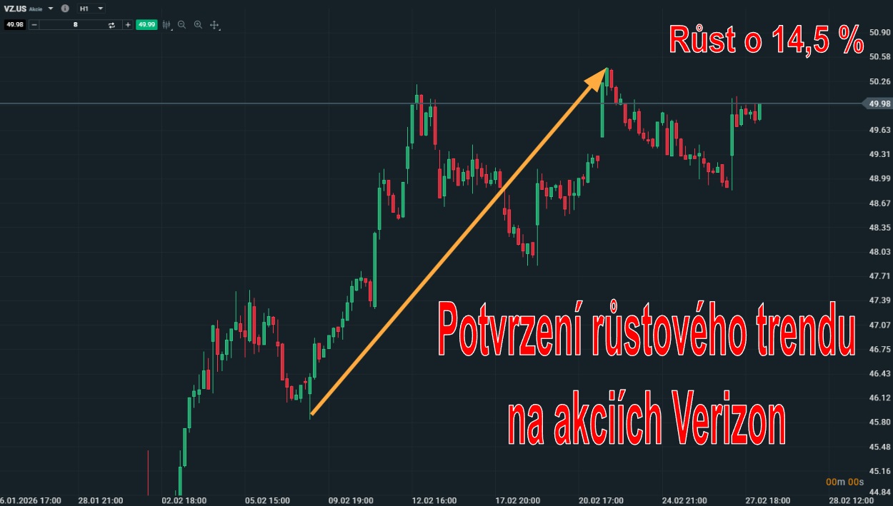 Mezi mega cap akciemi byly v únoru nejvýkonnější akcie společnosti Verizon. Tyto akcie totiž opustily pásmo své dlouhodobé konsolidace a posílily o 14,5 %. Pro investory se tak jedná po delší době o výrazný kapitálový růst, který určitě navýší jejich zisky, o které se v posledních letech staraly především vyplácené dividendy.