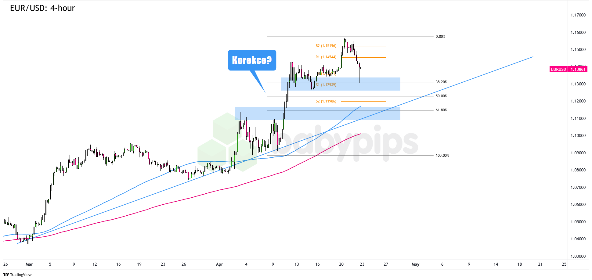 Vývoj měnového páru EUR/USD (4hodinový graf – H4):