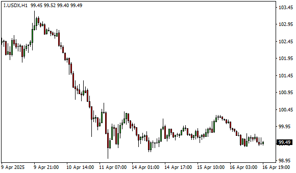 Vývoj dolarového indexu USDX (1hodinový graf - H1):