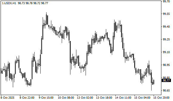 Vývoj dolarového indexu USDX (1hodinový graf - H1):