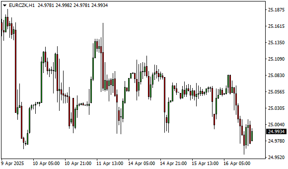 Vývoj měnového páru EUR/CZK (1hodinový graf - H1):