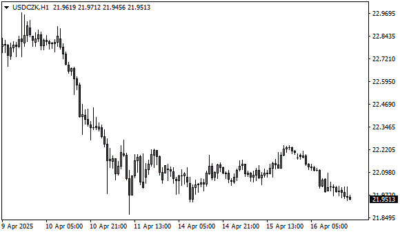 Vývoj měnového páru USD/CZK (1hodinový graf - H1):