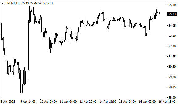 Vývoj ceny ropy Brent (1hodinový graf - H1):