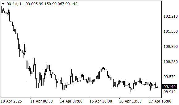 Vývoj dolarového indexu USDX (1hodinový graf - H1):