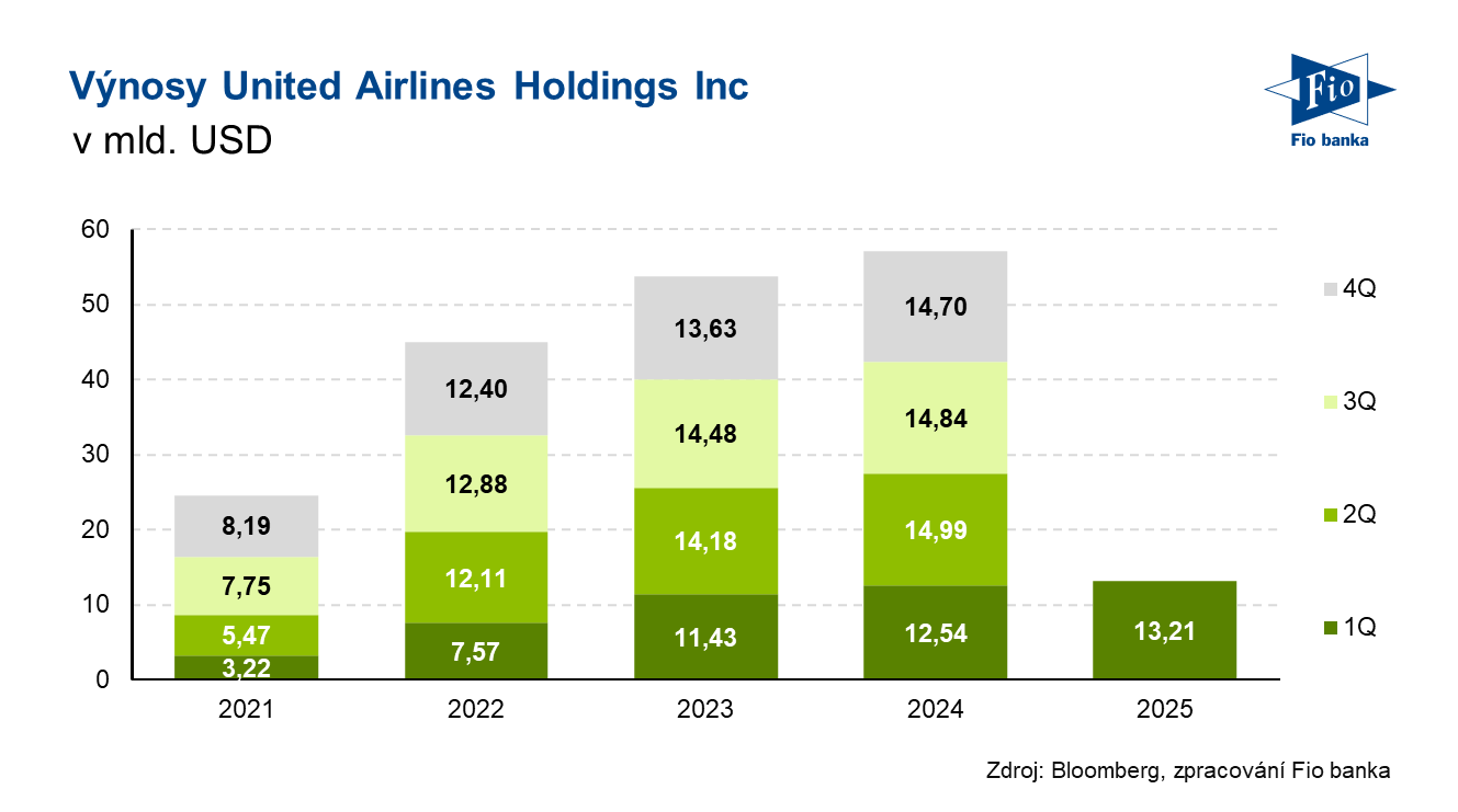 Americká letecká společnost United Airlines zveřejnila výsledky hospodaření 1. čtvrtletí 2025. Společnost zveřejnila očištěný zisk na akcii, který předčil očekávání analytiků. Pro svůj výhled se rozhodla učinit neobvyklý krok a představila hned dva možné scénáře zisku, standardní a jeden pro případ, že by americká ekonomika vstoupila do recese.