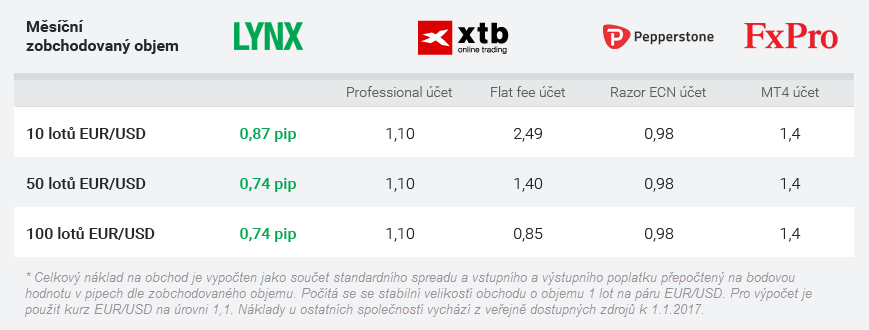 V tabulce níže si můžete prohlédnout srovnání LYNX s ostatními oblíbenými brokery. Pokud by vás zajímalo více k nákladům na obchodování u LYNX, pokračujte na www.lynxbroker.cz/forex.