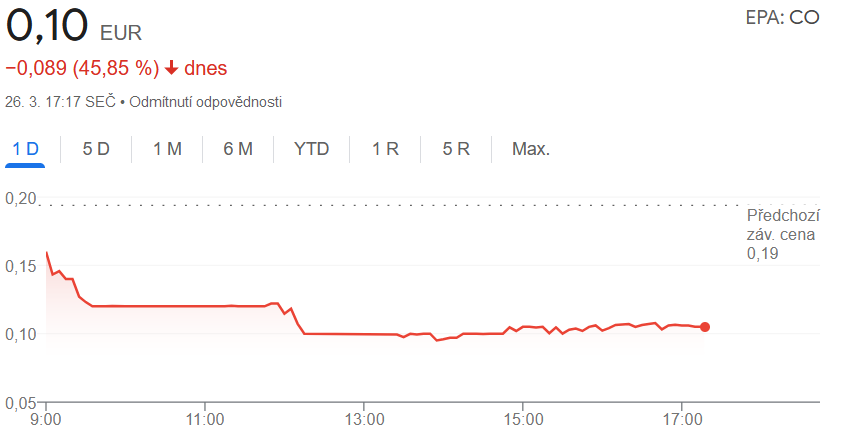 Vývoj akcie Casino (intradenní vývoj ceny za 1 den):