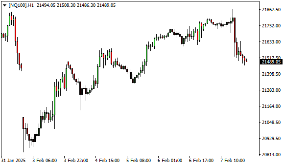 Vývoj akciového NASDAQ 100 (1hodinový graf – H1):