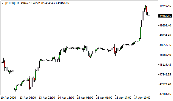 Vývoj akciového indexu Dow Jones (1hodinový graf – H1):