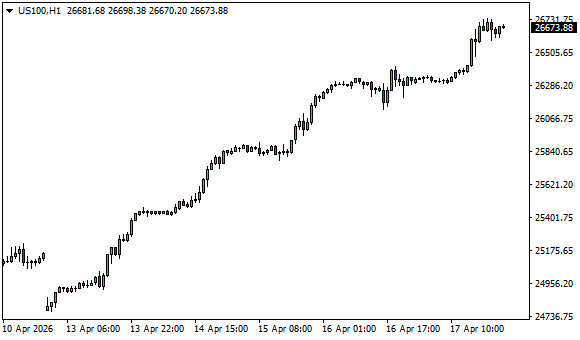 Vývoj akciového indexu NASDAQ 100 (1hodinový graf – H1):