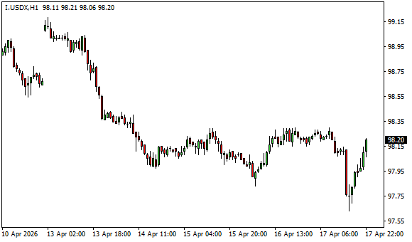 Vývoj dolarového indexu USDX (1hodinový graf - H1):
