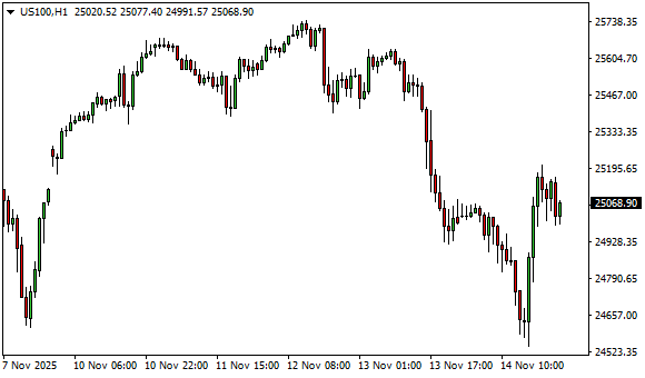 Vývoj akciového indexu NASDAQ 100 (1hodinový graf – H1):