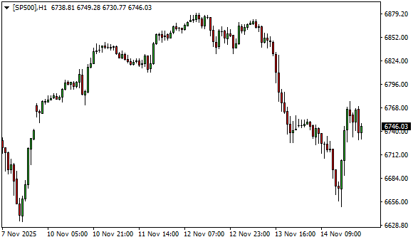 Vývoj akciového indexu S&P 500 (1hodinový graf – H1):
