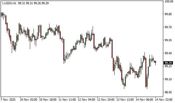 Vývoj dolarového indexu USDX (1hodinový graf - H1):