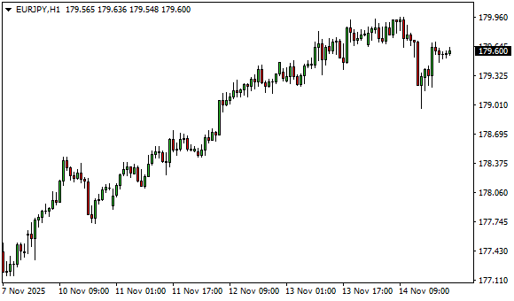 Vývoj měnového páru EUR/JPY (1hodinový graf - H1):