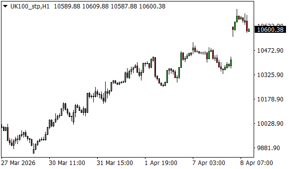 Vývoj akciového indexu FTSE 100 (1hodinový graf - H1):