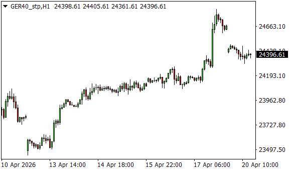 Vývoj akciového indexu DAX (1hodinový graf - H1):