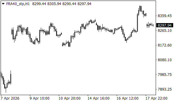 Vývoj akciového indexu CAC 40 (1hodinový graf - H1):