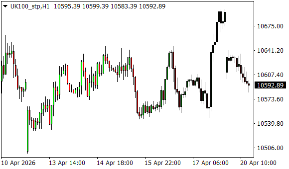 Vývoj akciového indexu FTSE 100 (1hodinový graf - H1):