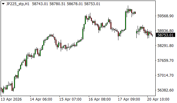 Vývoj akciového indexu Nikkei 225 (1hodinový graf - H1):