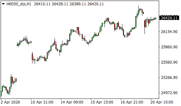 Vývoj akciového indexu Hang Seng (1hodinový graf - H1):