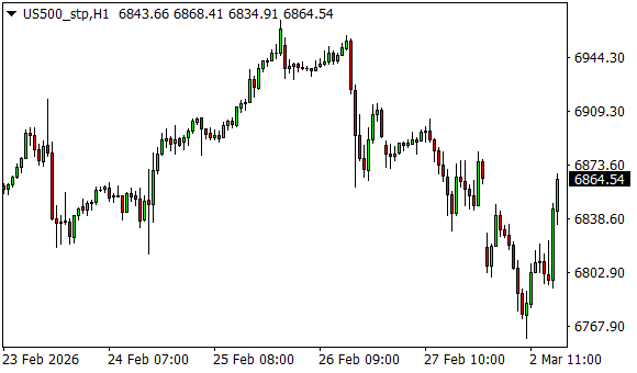 Vývoj akciového indexu S&P 500 (1hodinový graf - H1):