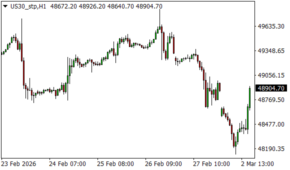 Vývoj akciového indexu Dow Jones (1hodinový graf - H1):