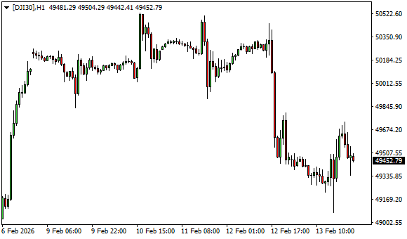 Vývoj akciového indexu Dow Jones (1hodinový graf – H1):