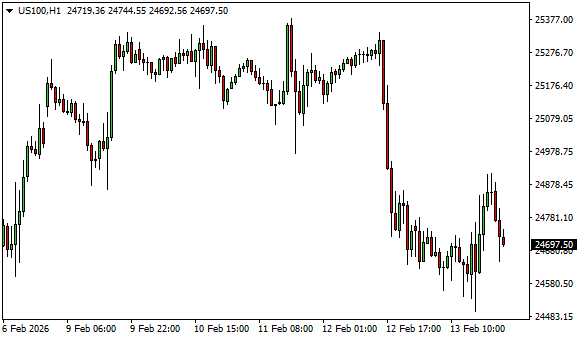 Vývoj akciového indexu NASDAQ 100 (1hodinový graf – H1):