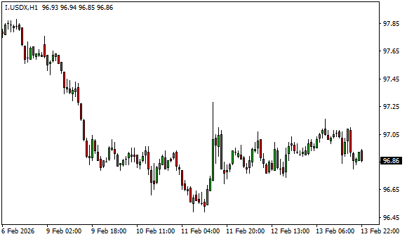Vývoj dolarového indexu USDX (1hodinový graf - H1):