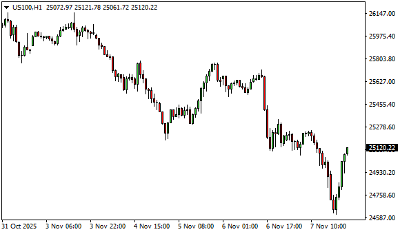 Vývoj akciového indexu NASDAQ 100 (1hodinový graf – H1):