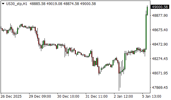 Vývoj akciového indexu Dow Jones (1hodinový graf - H1):