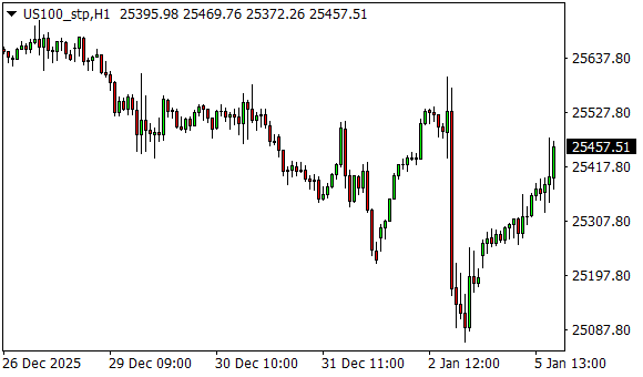 Vývoj akciového indexu Nasdaq (1hodinový graf - H1):