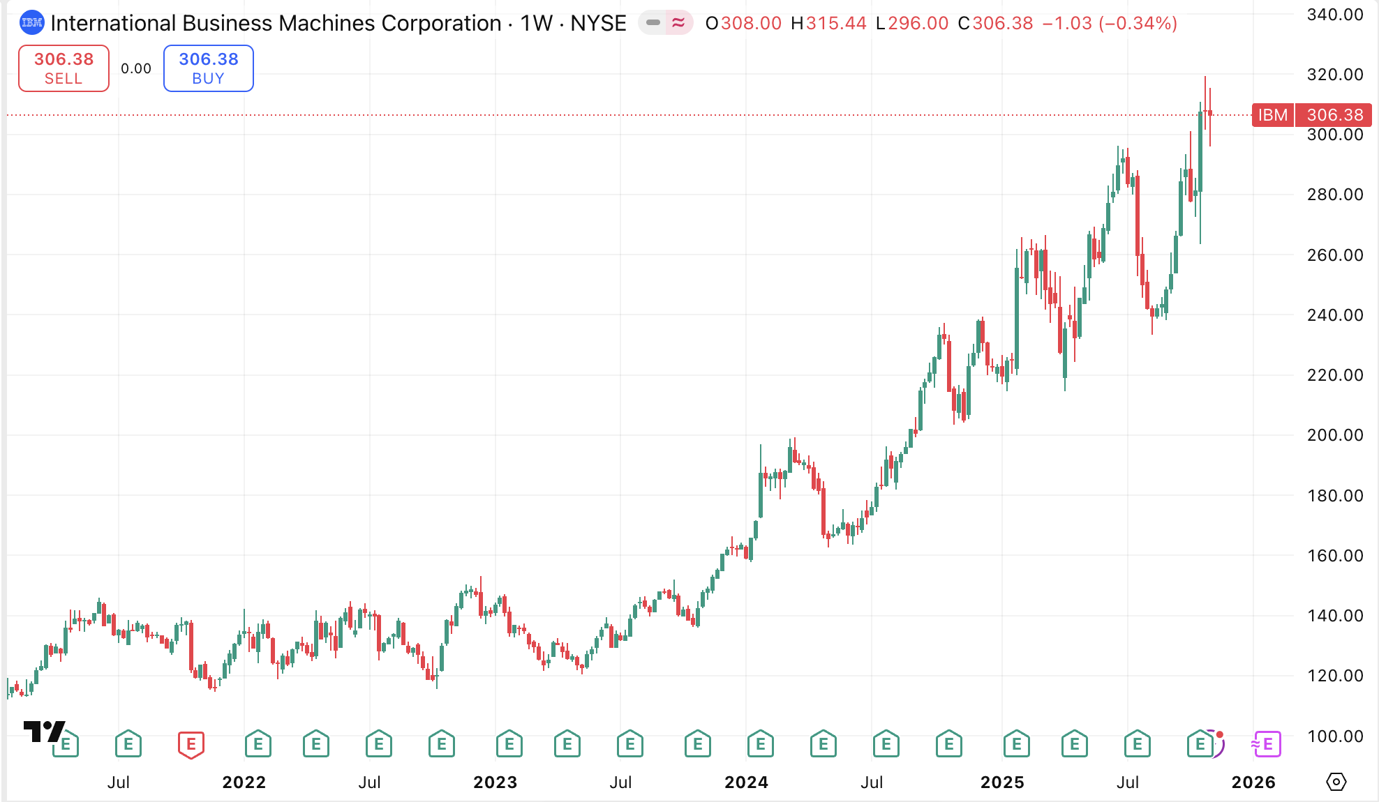 Akcie IBM za poslední rok vyrostly o 45 %, kromě toho jsou oblíbené i dividendovými investory, což není pro technologické firmy typické.