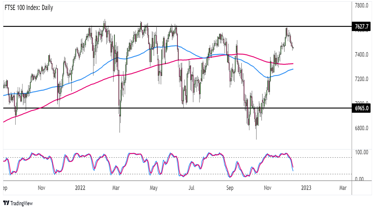 Akciový index FTSE 100 se odráží od rezistence obchodního pásma