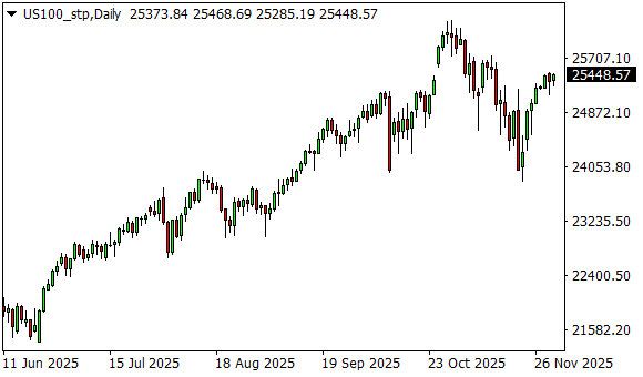 Vývoj akciového indexu Nasdaq (denní graf - D1):