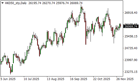Vývoj akciového indexu Hang Seng (denní graf - D1):