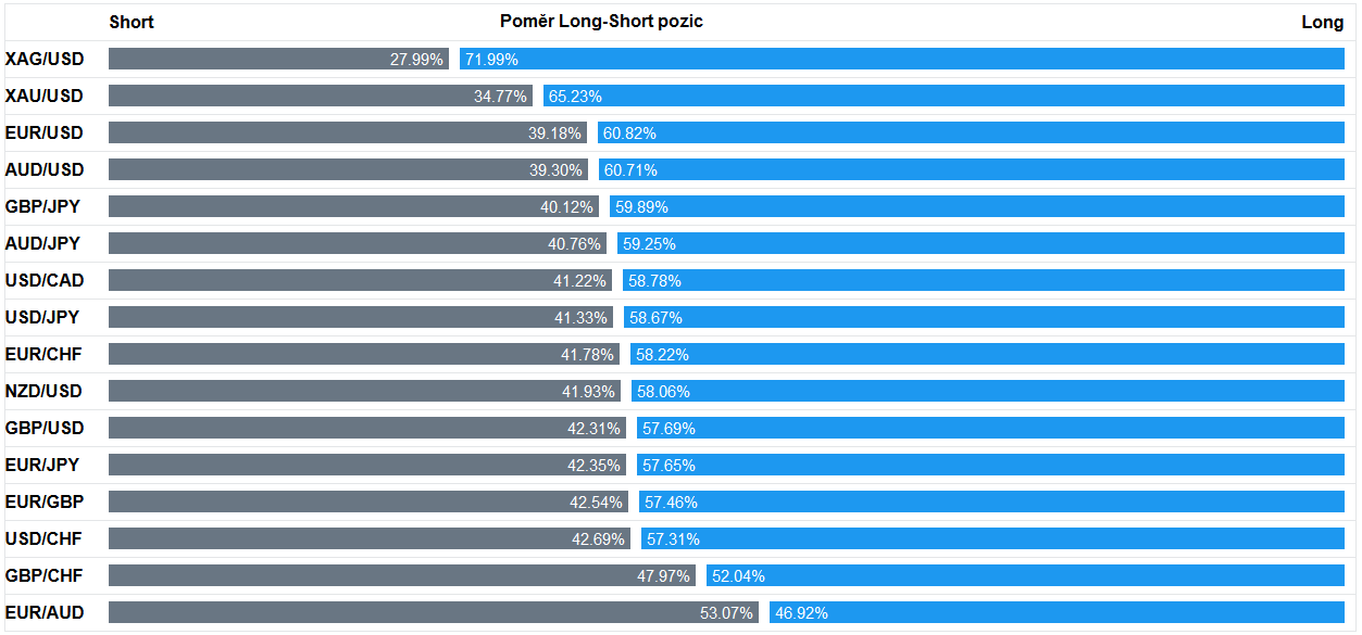 Přinášíme aktuální pohled na otevřené pozice forex (FX) retailových obchodníků. -