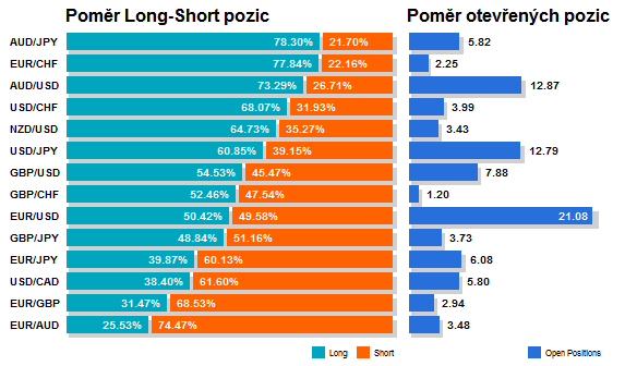 Přinášíme aktuální pohled na otevřené pozice forex (FX) retailových obchodníků.