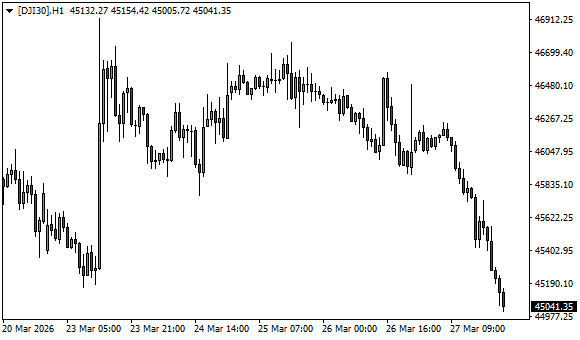 Vývoj akciového indexu Dow Jones (1hodinový graf – H1):