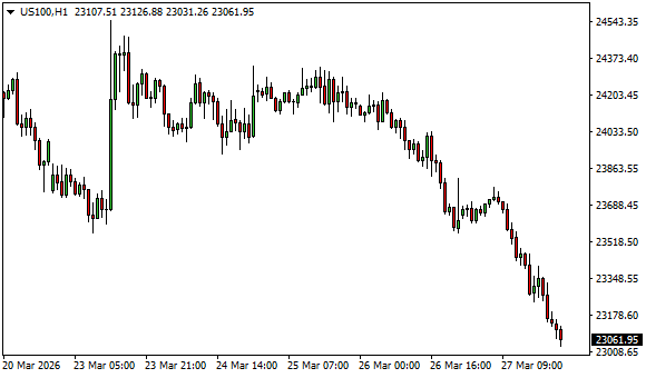 Vývoj akciového indexu NASDAQ 100 (1hodinový graf – H1):