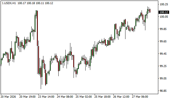 Vývoj dolarového indexu USDX (1hodinový graf - H1):