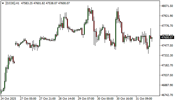 Vývoj akciového indexu Dow Jones (1hodinový graf – H1):