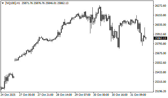 Vývoj akciového indexu NASDAQ 100 (1hodinový graf – H1):