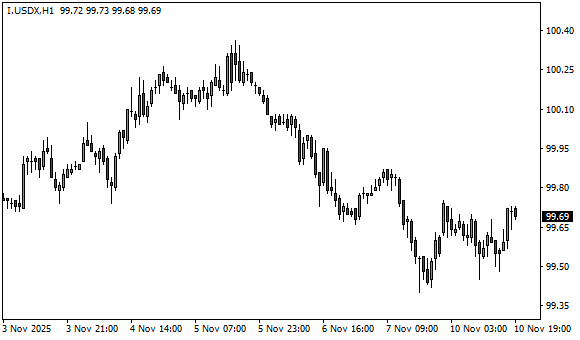 Vývoj dolarového indexu USDX (1hodinový graf - H1):