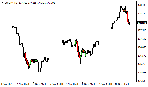 Vývoj měnového páru EUR/JPY (1hodinový graf - H1):