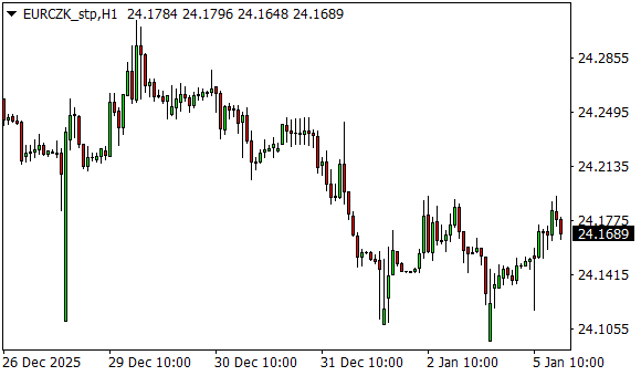 Vývoj měnového páru EUR/CZK (1hodinový graf - H1):
