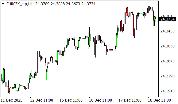 Vývoj měnového páru EUR/CZK (1hodinový graf - H1):