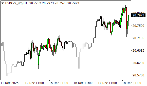 Vývoj měnového páru USD/CZK (1hodinový graf - H1):