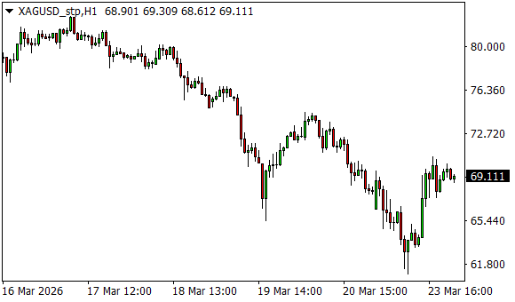 Vývoj ceny stříbra (1hodinový graf - H1):